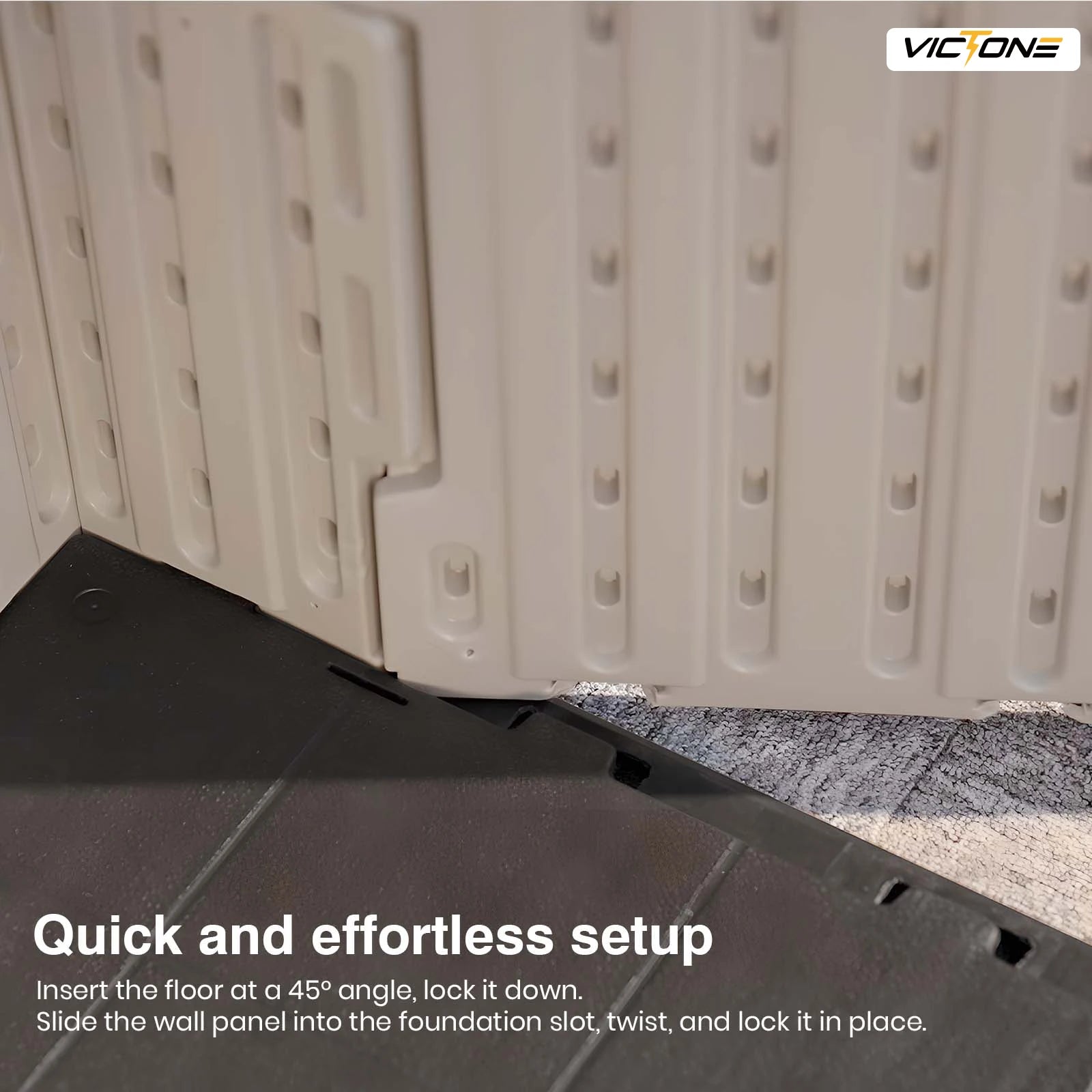 - Kick-it installation reduces screws by 35%, making assembly quick and straightforward—press wall panels into ground slots and apply a firm kick to lock them in.